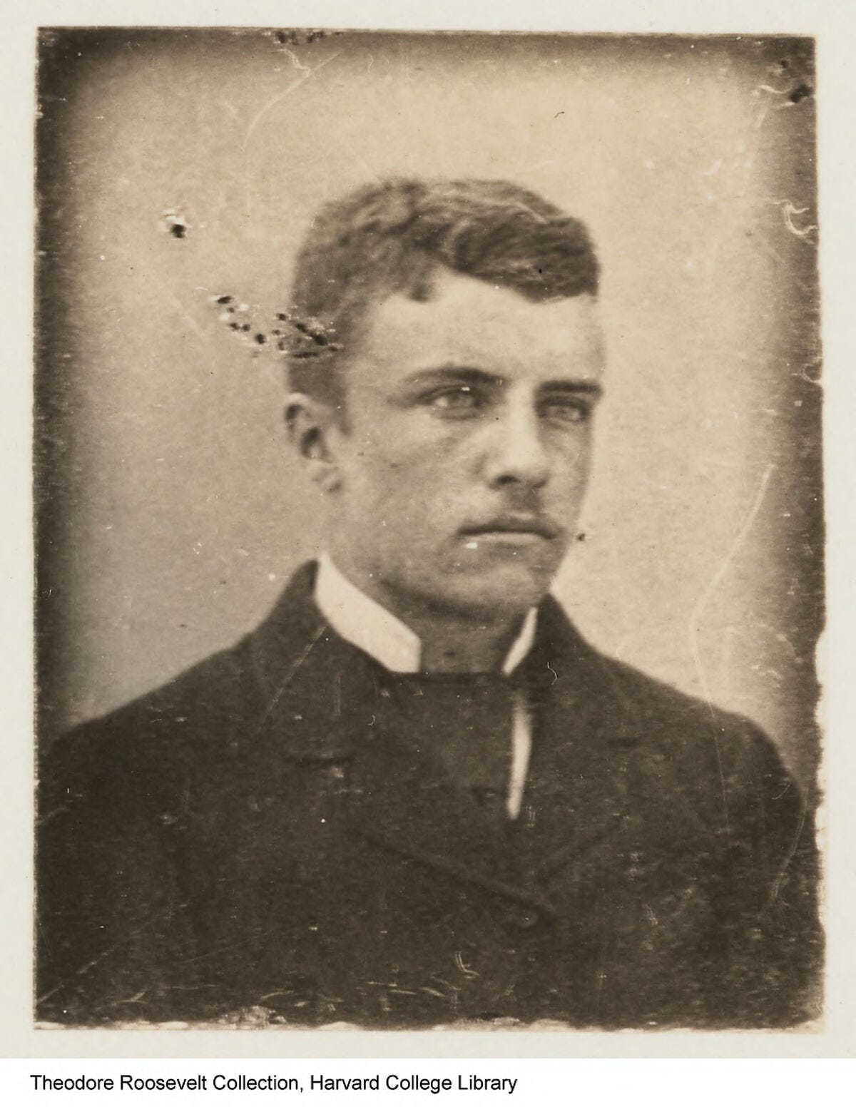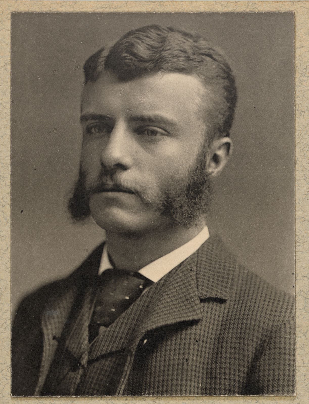 Roosevelt even tried the clean-shaven look in college, devoting a good portion of a letter to his sister Corinne in May 1878 talking about his lack of facial hair: “At last the deed is done and I have shaved off my whiskers! The consequence, I am bound to add, is, that I look like a dissolute democrat of the fourth ward. I send you some tintype I had taken for distribution among my family and friends.”
