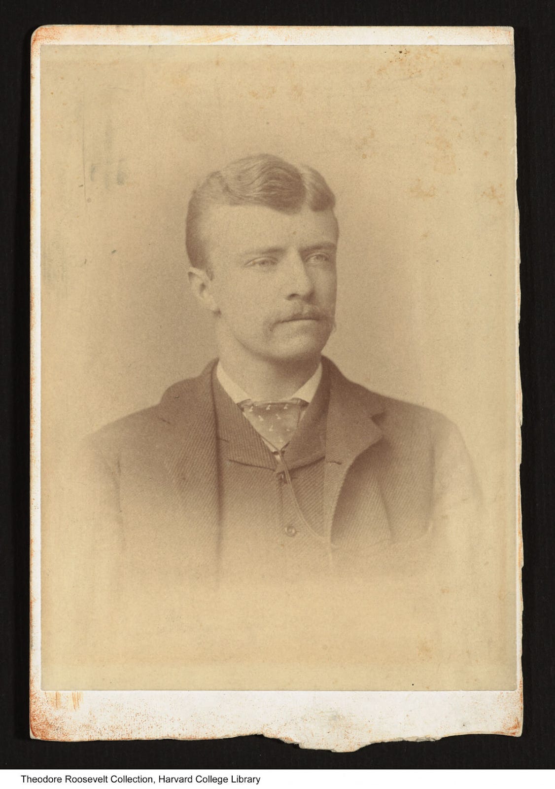 We’ve also included two photographs from 1883 of Roosevelt with his mustache in case you haven’t seen them before so you can get a sense of what a young mustachioed Roosevelt looked like.